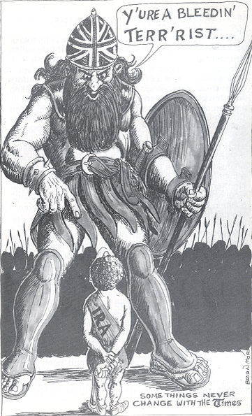 "Y'ure A Bleedin' Terr'rist....Some Things Never Change With The Times" Irish Northern Aid-Irish Prisoners of War Committee, April 1981 Brian Mór Ó Baoigill, artist AIA Dig ID 0010PL02 © 2001 ALL RIGHTS RESERVED