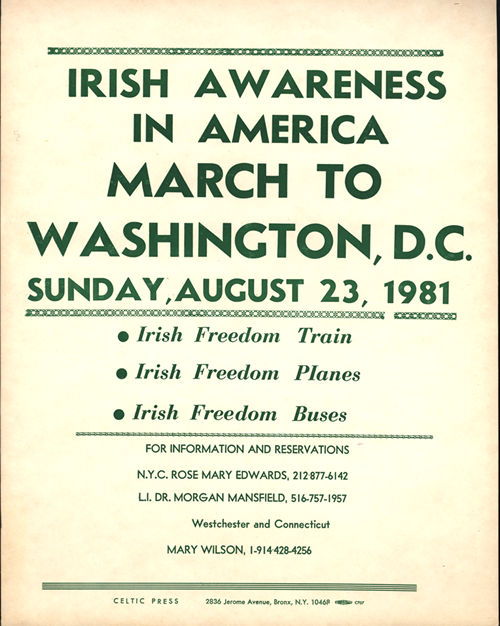 "Irish Awareness in America March to Washington D.C." Coalition of Irish Americans Poster, August 1981 John McLaughlin Papers AIA Dig ID 0014PL02 © 2001 ALL RIGHTS RESERVED
