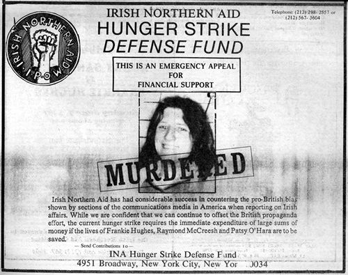 "Hunger Strike Defense Fund" Irish Northern Aid advertisement Irish People, 9 May 1981, 10 AIA Dig. ID 0024PL03 © 2001 ALL RIGHTS RESERVED