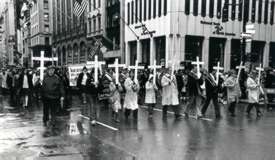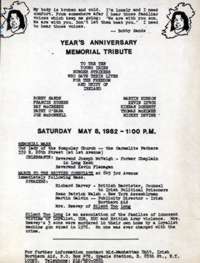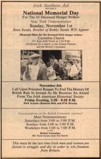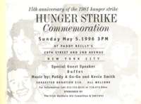 name." "And so it went yesterday, 10 names in all, the 10 Irish Republican Army members who died 20 years ago in a hunger strike at a prison in Northern Ireland, recalled in a somber service as heroes and martyrs for Ireland. The widow of Mr. Sands...expressed gratitude for the turnout, which was said to be among the largest since memorial Masses for the hunger strikers were first held in the early 1980's... Larry Downes, president of the Friends of Sinn Fein Organization, said
