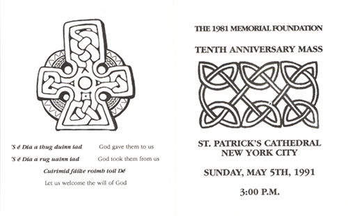 10th Anniversary Mass, St. Patrick's Cathedral, New York City 1981 Memorial Foundation program, 5 May 1991 Irish Republicanism Collection AIA Dig. ID 0043PL02 © 2001 ALL RIGHTS RESERVED