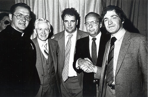 Fr. Sean McManus, Willie Joe Cunningham, Jim O'Gara, Senator Alfonse D'Amato, & Oliver Hughes, brother of hunger striker Francis Hughes, Irish National Caucus meeting, Washington, D.C., May 1981 Peter Dolan, photographer New York Irish History Roundtable Papers AIA Dig. ID 0009PL01 © 2001 ALL RIGHTS RESERVED