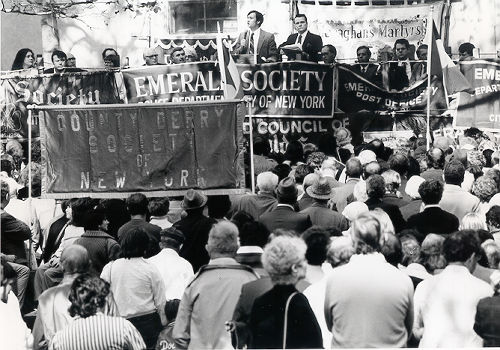 Irish Solidarity Day (Martin Galvin, at podium with microphone) Dag Hammarskjold Plaza, New York City, 2 October 1981 Peter Dolan, photographer New York Irish History Roundtable Papers AIA Dig. ID 0023PL01 © 2001 ALL RIGHTS RESERVED